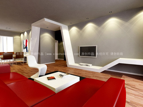 在解决了诸多功能问题后,我一贯不想走常规路线的怪念头又拉扯着我,想做一个不一样的东西出来,于是,一番“瞎闹”之后,看到的就是这样一个连续不断,从地到墙,再到顶的“不明物体”,它或许是是电视柜,又或许是餐桌,又或许是储物柜,又或许是装置台……,一切皆有可能,一切也有着趣味,犹如一种叫“缘”的东西,连绵不断。