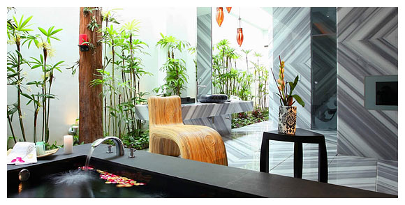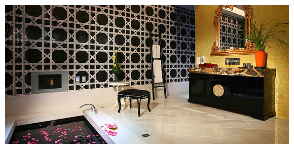 ↗ 明亮的浴室空間,超大浴池讓人不經聯想起羅馬時代浴池文化