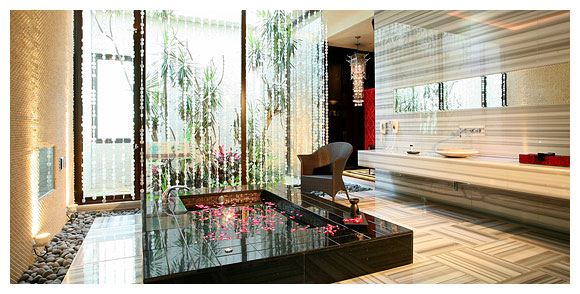 擁有百坪空間的水舞套房,備有長15米寬3米的私人泳池,並可漫步在空中花園,由房內透明的玻璃望出去就是一片湛藍,躺在泳池畔邊的斜躺椅上,還可看到寬闊的天際線,有如置身於國外的頂級Villa。沐蘭提供了都市人隨時可以渡假的情境和氛圍。