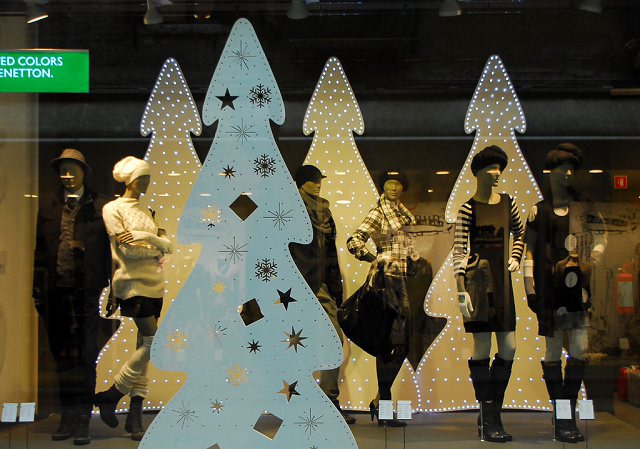 moschino 小树的叶片是意大利国旗的颜色,还挂着金苹果,天上有丝质的云朵