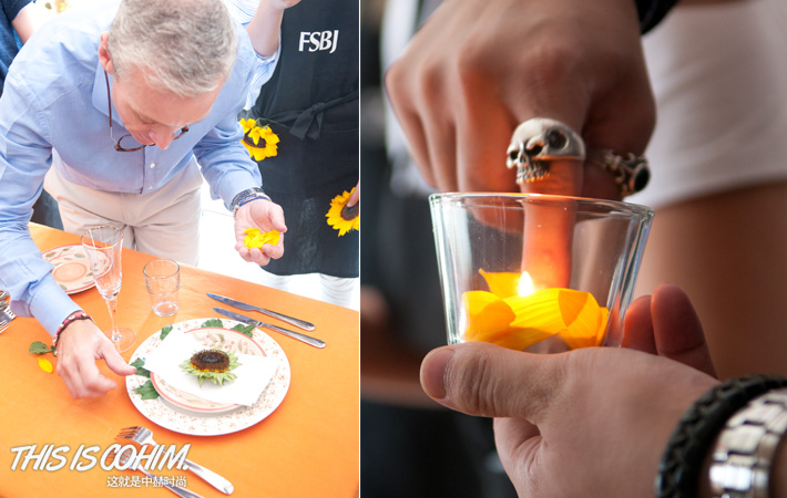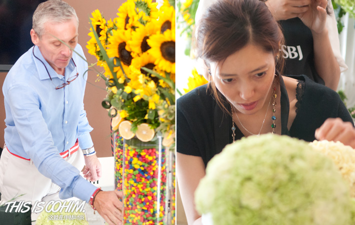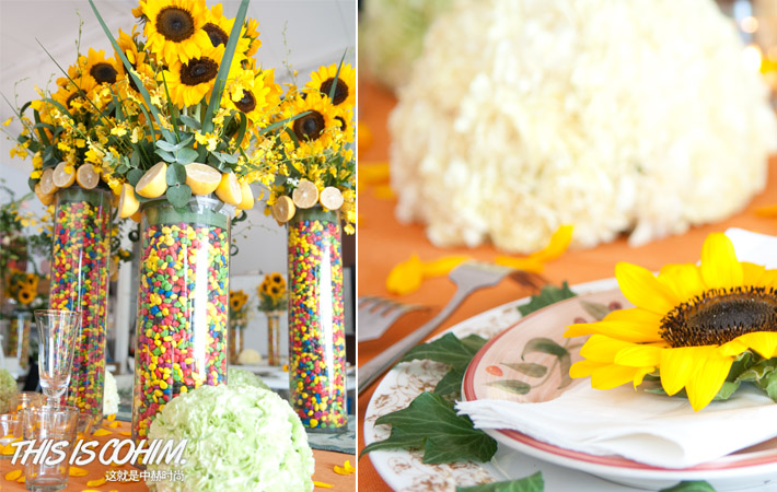 曾经我被邀请去法国南部做一场儿童的庆生会.儿童庆生会的宴会花艺设计在于色彩的搭配与选择,花材的选择与材料的搭配。儿童宴会花艺设计既难于捕捉儿童真正的需求,也需要达到家长办宴会真正的目的。1409宴会花艺班同学跟着John Carter一起体验纯粹的法式宴会花艺设计。跳跃的黄色用柠檬与太阳花,每个花器里边填满了多彩的巧克力豆。问道John Carter为什么想要选择太阳花时,他说道:“当我到达生日宴会现场,在旁边看到大片的太阳花海,立即将一只太阳花采摘下来,在素材库中寻找同一色系的花材,也寻找着一种法国南部的生活方式。”
