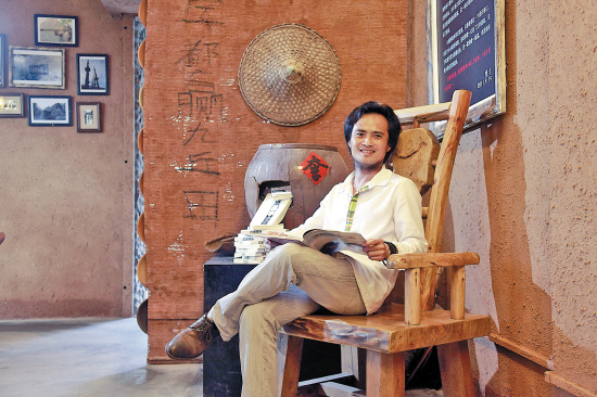 眷恋乡土而不土气,这是朋友对连君的评价。生活中的连君爱好音乐,既听古典也听周杰伦;他热爱阅读,既看古典文学也看各种杂文随笔;他不觉自己前卫时尚,但设计作品常能结合古朴元素做出新意:一口残破水缸可以设计成书香流韵的古物、一群茅草房,恁是可以设计得高端大气。