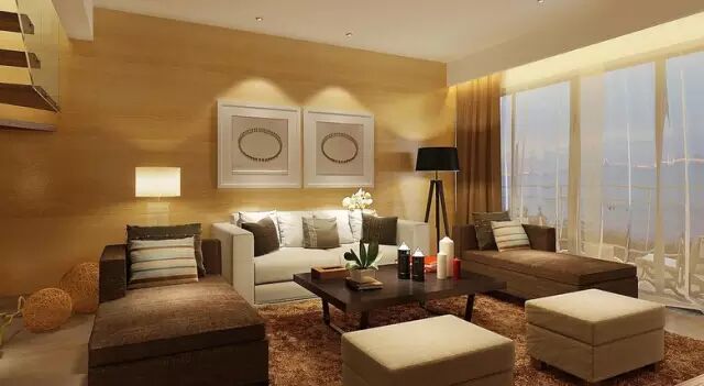 沙发摆放最好靠墙,因为靠墙就等于“靠山”,另外,沙发宜摆放成U型,凹陷处是风水的纳气位,可以聚财。