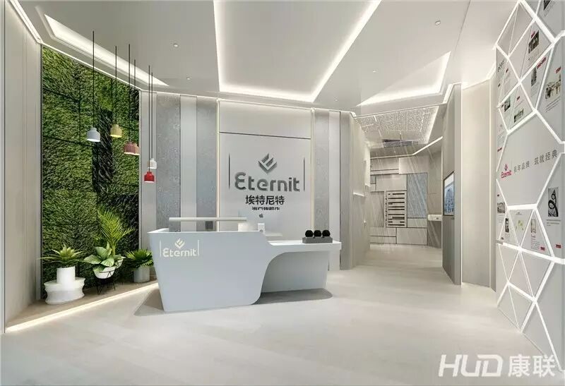 设计理念:埃特尼特建筑系统有限公司隶属于比利时埃泰集,是纤维增强水泥生产技术的 发明者,也是纤维增强水泥行业世界领导者。埃特尼特体验店的设计通过简洁流畅的线条 、独特的多边形。给人视觉效果简洁明快,极具设计感和美感,整体色彩低调沉稳,给人一种专业、高效的印象。