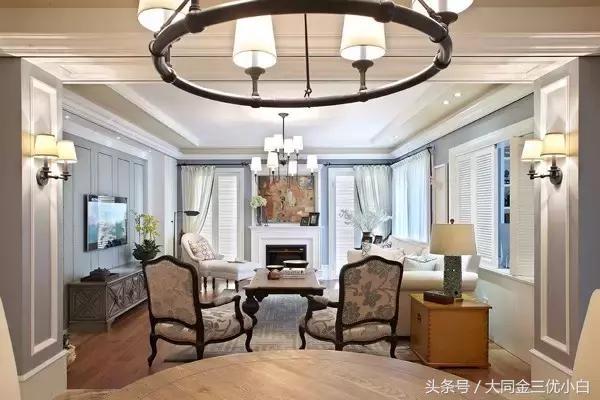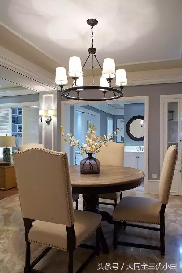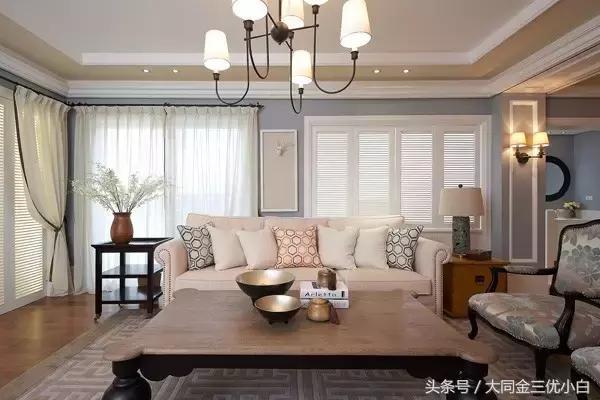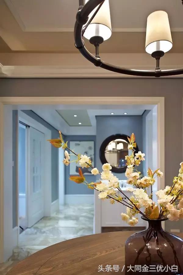 本案为现代美式风格,以自然色调为主,大面白色烤漆饰面板与蓝灰色墙纸相衬;纯纸浆质地的单色壁纸,仿旧漆,式样简约的家具,别致的小饰品,现代的抽象油画,一一体现了随意的生活方式。