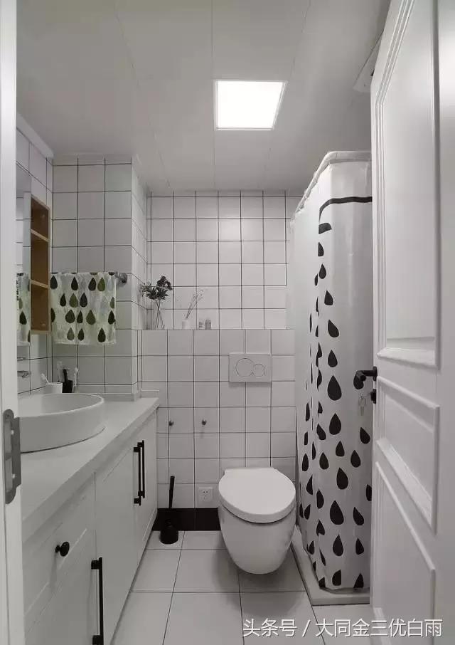 卫浴室选用了浴帘,一方面能有效干湿分离,另一方面看腻了也能方便更换,让浴室换上一副新面貌!