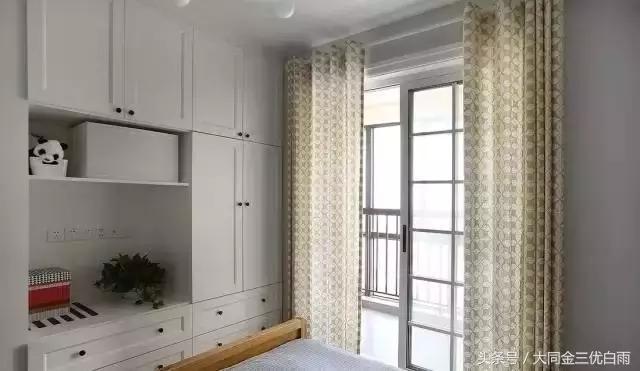 绿色背景墙旁是拉上帘子的区域是屋主人最爱的步入式衣帽间,自成一方独立的小天地。