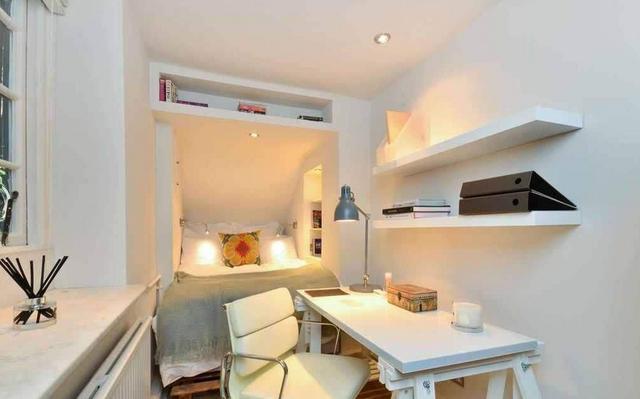 首先床的造型要简洁,造型太复杂的床不仅占空间,而且视觉上也会更加的拥挤。至于床尾凳之类的鸡肋家具就不要想了。衣柜最好选用浅色系的,看起来简洁明亮。