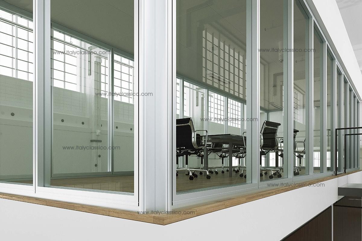 办公玻璃分区设计和生产的新一代品牌,从透光度,功能性和设计角度考虑,VETROIN的产品类型划分出如下几个范畴:简单的单片玻璃工艺衍生出来的双片工艺,传统的墙体样式分区,储存到创新型的可逆推轨道分区样式。