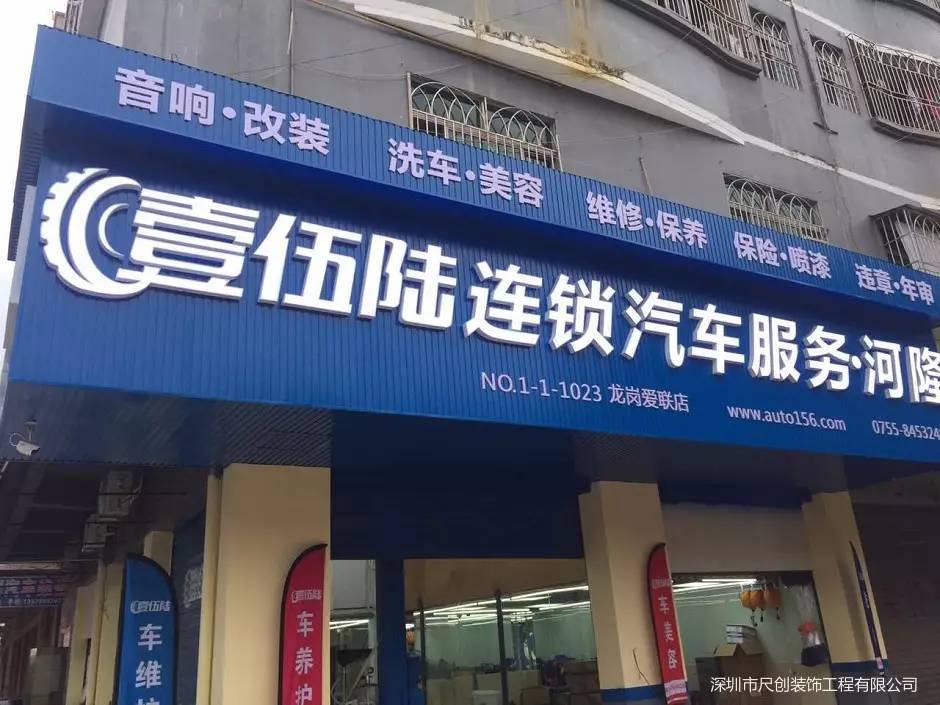 美观化是指居室的装饰要具有艺术性,特别是要体现在个体的独特审美情趣。一个店铺的门面是至关重要的,它象征着整个店的服务。以下汽车服务店中的门头我们采用了蓝色底白色的发光字体,由于蓝色沉稳的特性,具有理智、准确的意象,在商业设计中,强调科技、效率的商品或企业形象。