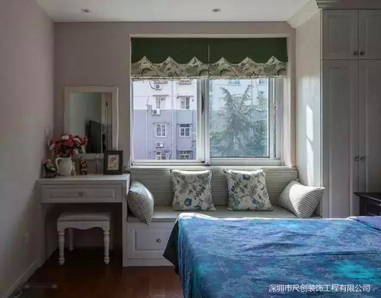 2、留一个空间给梳妆台也很不错,也能当做飘窗的台面,放一杯茶、几本书很悠闲。