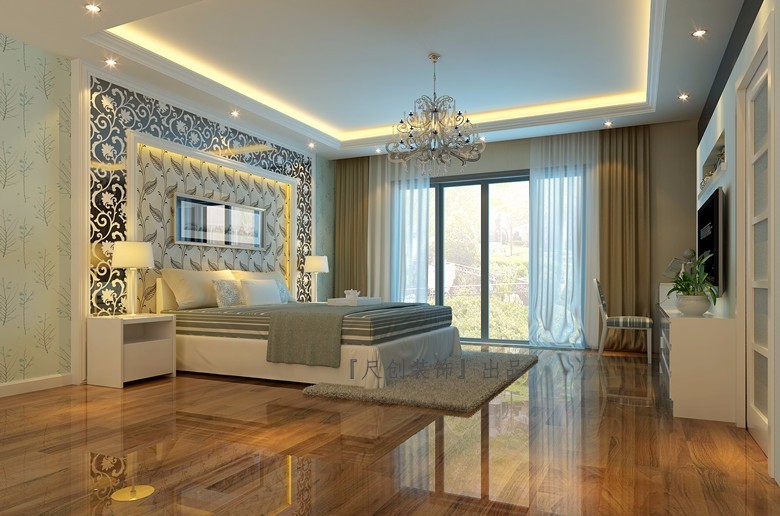 2、壁画装饰:在墙上布置风景优美,画面深远的壁画,仿佛开启了自然之窗,令人视觉开阔,房间显得大了许多。