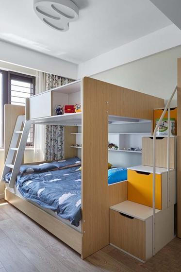 深色布艺沙发,和原木色的家具,让家庭氛围温暖起来。