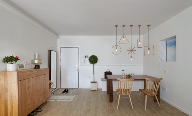 也许是环形的白色布艺沙发让你眼中只有纯白,也许是日式的桌椅更贴近自然,甚至是树枝分叉造型的灯照亮了你的简单。