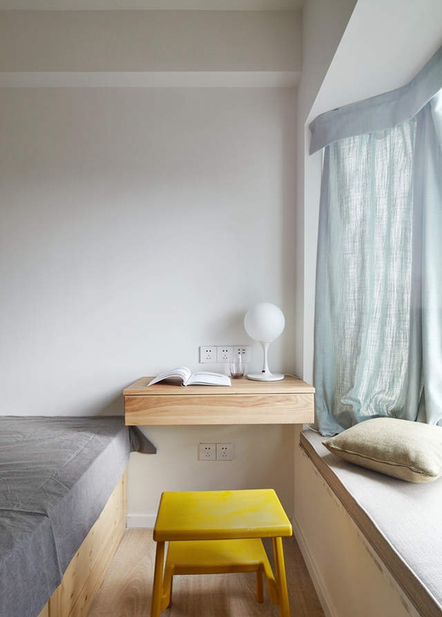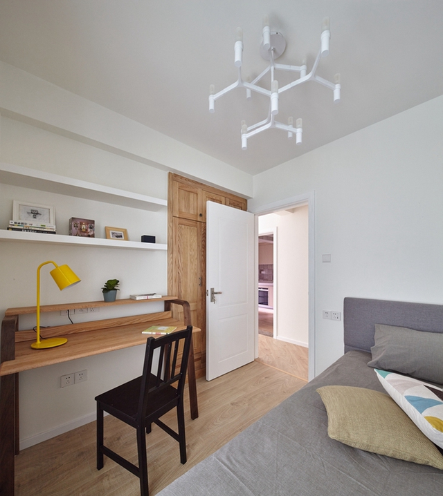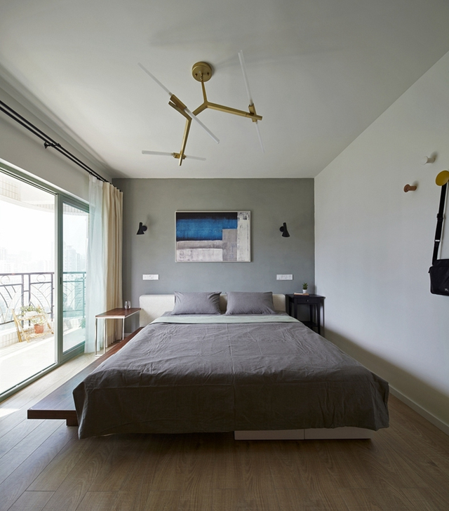 卧室那奇异造型的灯,为卧室增添了几何元素。