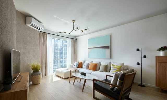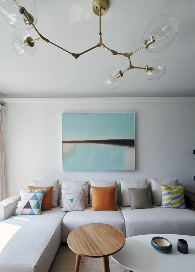 宽敞的客厅,极简得只剩下必备的家具,奇怪的是你依旧觉得它很丰满。