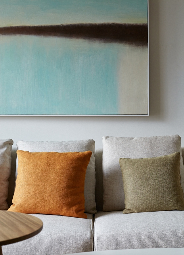 你看这抱枕,白色的云,蓝色的天,黄色的土,绿色的树。简单的家居囊括了几乎所有自然元素。