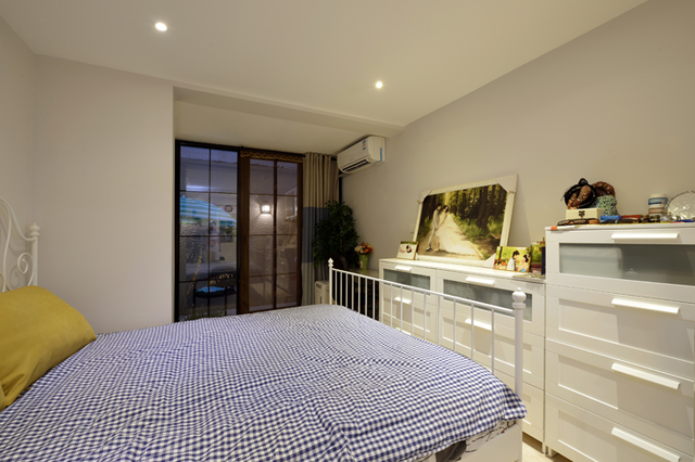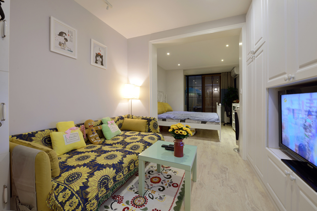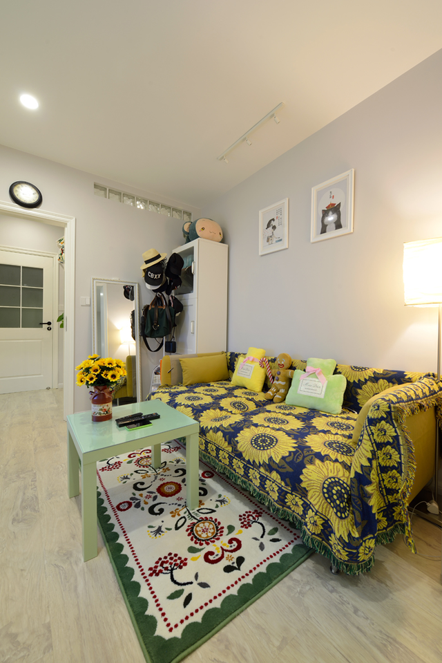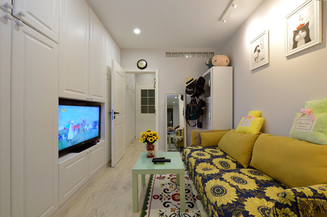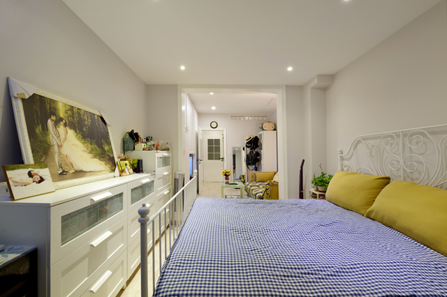 因为房子原本是很典型的上海一字型一室户,格局紧促,使用空间有限。进门就是卧室,再走就是客厅.