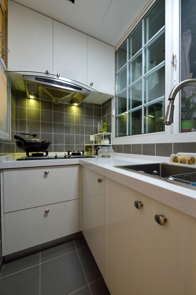 过道改造成的厨房。尺寸也要拿捏,从人的角度出发,不能光实现功能,和美观去进行压缩.