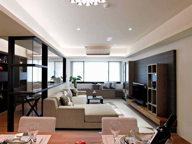 现在小户型的房子越来越受到人们的喜爱,不过由于小户型的房子面积较小,有时候整体看着可能会有些压抑,这时候就需要在装修的时候下功夫了,只要设计的好,小户型也可以装出比实际面积更大的视觉效果。小户型精彩、紧凑、精致,但同时空间局促、家具不易摆放。要想把小户型家居打造得功能完善、美观大方,可以从空间布局、色彩、家具以及软装饰等处理手法上予以重视,只要处理得当,小户型也可以变得很“大”。小户型装修设计主要以使用功能为主,在满足生活的需要的基础上合理划分区域,尽量在有限空间里安排出更多的使用空间。以玻璃代替或凿洞借光,既节省了占地面积,降低压迫感增加通透性,又增加了层次。尽量不采用吊顶。使用吊顶,一方面灯光效果不好,另一方面占用空间。下面这套案列设计师通过格局的通透设计,让整体呈现出比实际更大的视觉效果。简单而又精心的布局,使60方的房子也能营造出现代、大气的舒适感,感觉就有120平的样子!