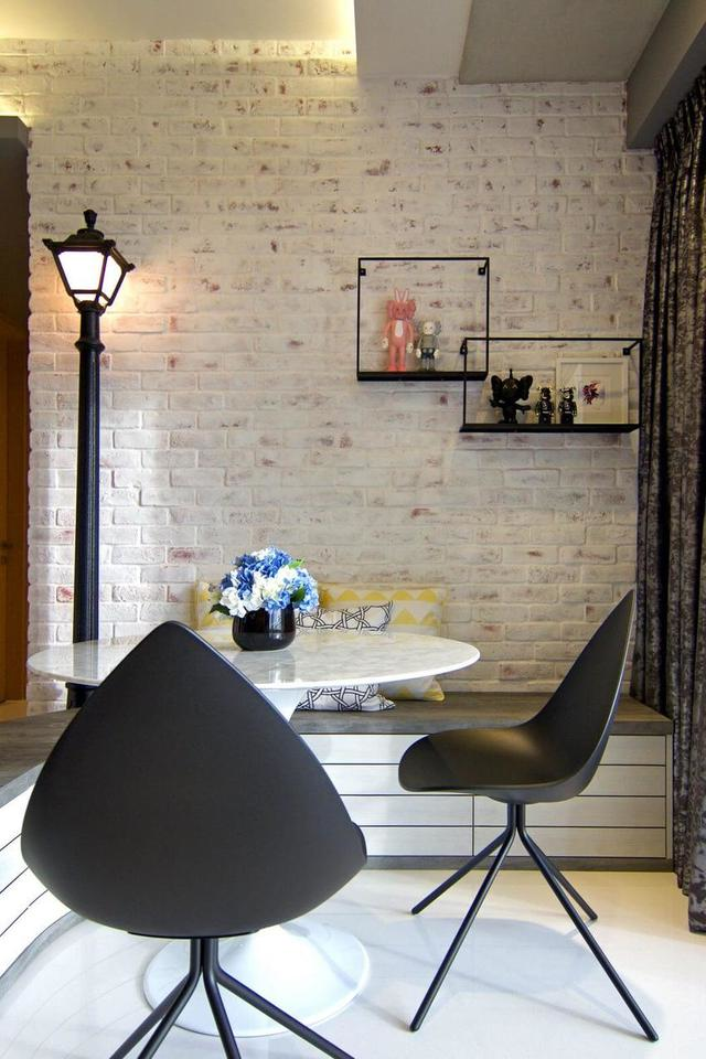 墙上的画也是色彩丰富与整体风格相呼应,近处街灯效果下的餐桌透出 “街角咖啡店”的感觉,仿佛喧闹中一隅宁静之处。