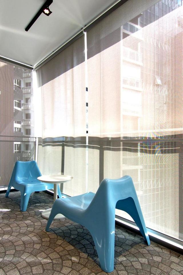落地窗边简单的座椅,满足会有访客需求。放在角落也让交谈时气场静下来。