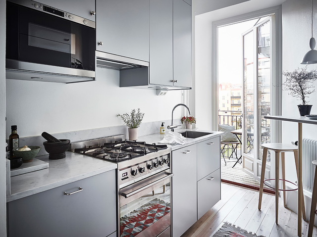 厨房整体感觉利落,虽然空间有限,但功能齐全,操作需求完全得到满足。