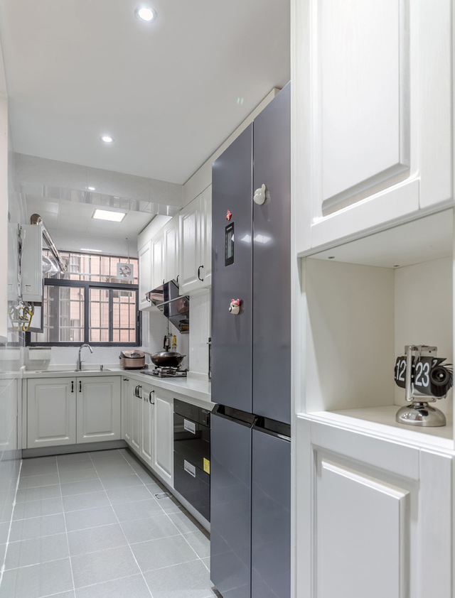 厨房门口的小立柜即解决了出入口的小物件收纳,也解决了冰箱侧面收口问题。
