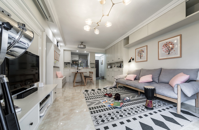客厅并非一定就需要茶几,多点和孩子的互动空间未尝不可。