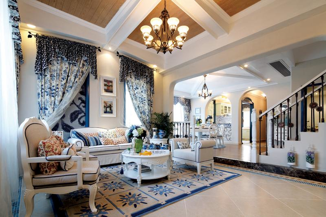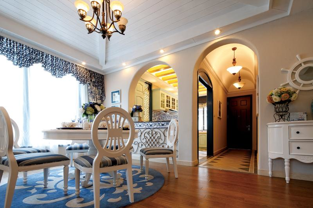 地中海风格特点的灵魂是—蔚蓝色的浪漫情怀,海天一色、艳阳高照的纯美自然。对于地中海来说,白色和蓝色是两个主打,最好还要有造型别致的拱廊和细细小小的石砾。地中海风格在造型方面,一般选择流畅的线条,圆弧形就是很好的选择,他可以放在我们家居的空间的每一个角落,一个圆弧形的拱门,一个流线型的门窗,都是地中海家装中的重要元素。在地中海设计中,一般都是较为鲜艳活泼的色彩搭配。房屋的女主人比较喜欢鲜亮色彩,说看着心情都比较明朗,既然是给自己的家做装修一定要做的有温度。男主人对老婆是疼爱有加,说就按老婆的要求来。艾逸网推荐的设计师了解之后,建议装修为地中海风格,每天都好像在蓝天白云之下享受徐徐的海风,岂不美哉。