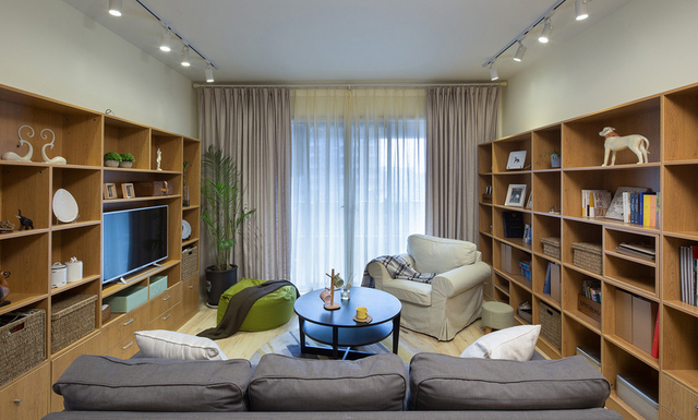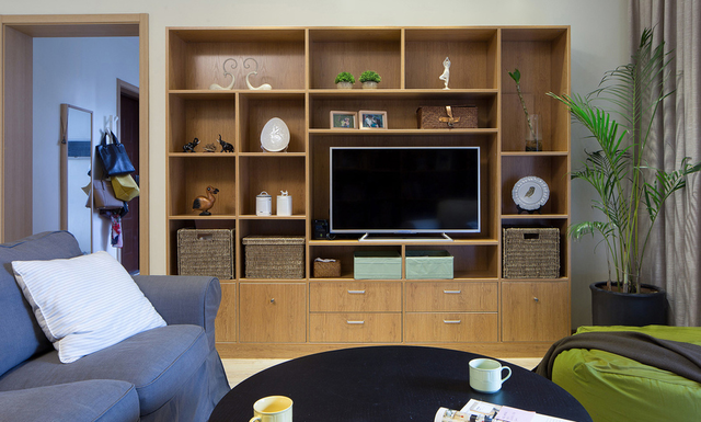 谁说一定要电视墙?把电视放进柜子里!分格设计可以提供更多空间摆放小物件。