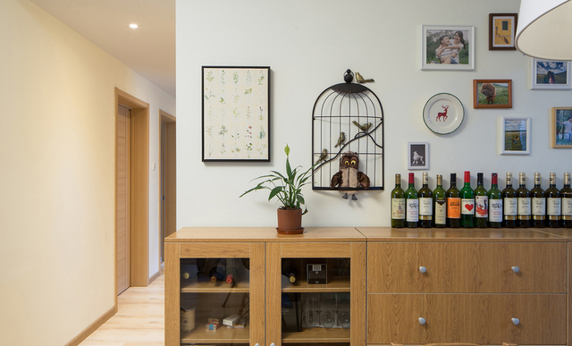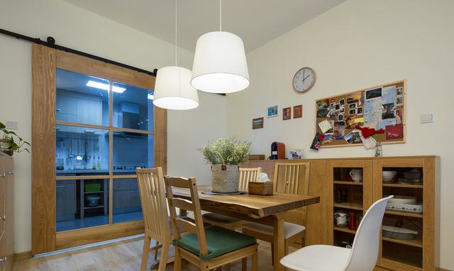 玻璃移门隔断了厨房和餐厅。餐厅成了一个更为开放的空间。无处不在的年轻,在随意的照片墙上。