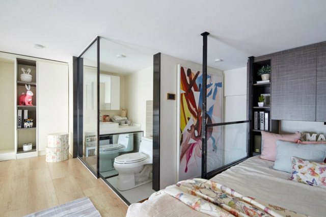 打造透明卫生间的做法,一般是将“碍眼”的混凝土墙拆掉,换成玻璃墙面,而对于一些主卧中的卫浴间来说,则索性使用玻璃作为隔断。这样一来,卫浴就成了房间令人眼前一亮的所在,喜欢美化房间和享受生活的年轻人还可以将卫浴内装扮得充满诗意和小资情调。 下面艾逸网小编就带你一起去看看这套案列,看了会不会让你脸红心跳呢?