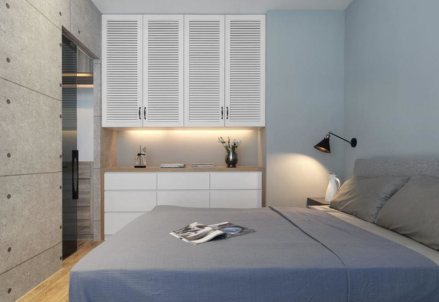 相对于主卧灰白色调,次卧更显活泼。玄关设计法,增强更多的私密性。