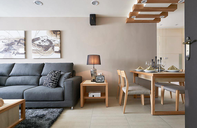经由规划与重整,让客、餐厅动线与关系更加完整,以木质格栅来化解压迫感,也增添休闲舒适的意象。