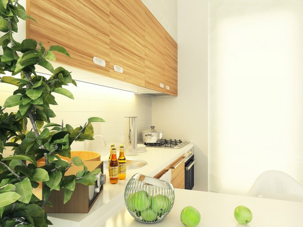 厨房非常简单,一套橱柜就轻松解决了!原木色橱柜+绿植散发出浓浓的暖春气息,不知道业主会不会因此爱上烹饪呢。