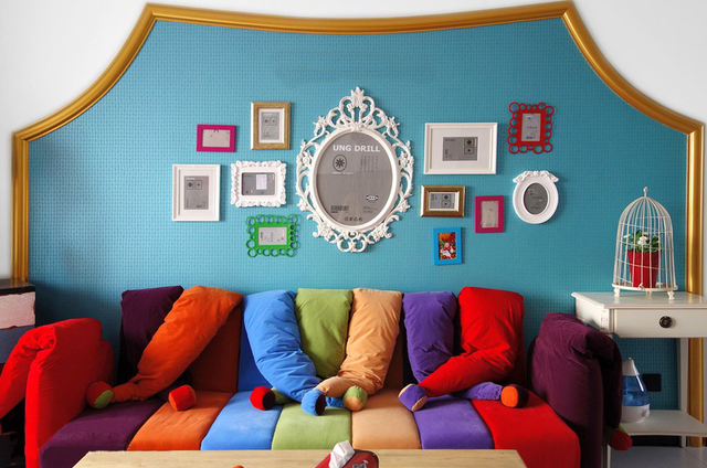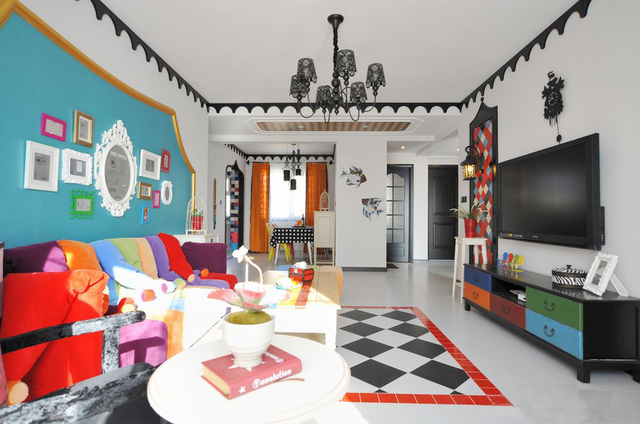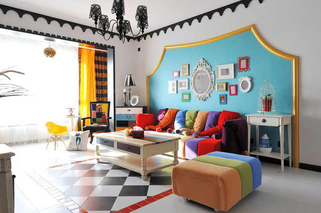 通常居室空间设计都会定一个主色调,但色彩混搭却没有主色调,居室空间中,各种颜色所占的比例相当,营造出一个色彩斑斓的小世界。