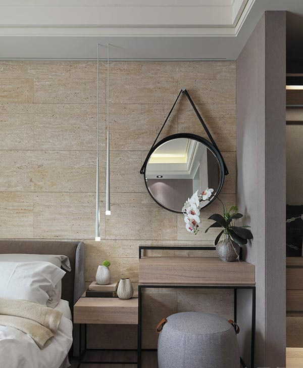 特别选用仿石材纹路的进口壁砖做拼贴,藉由其自然而细腻的纹理,堆砌人文雅致氛围。