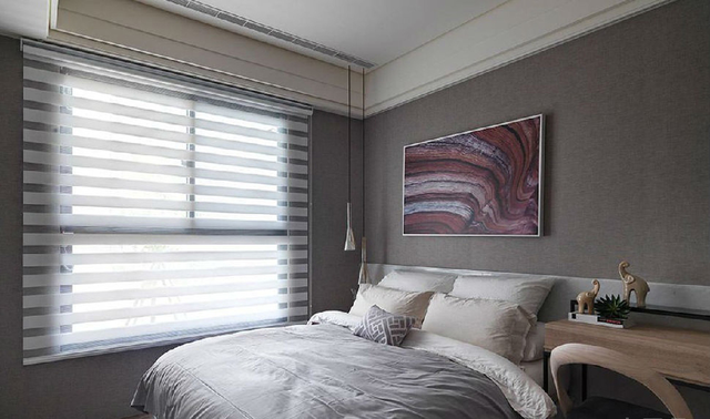 墙壁以山水画般的艺术画做装饰,将文艺气息带入卧室空间。