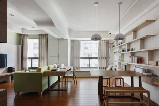 一个人的性格、兴趣、习惯,都能从居住环境中了解到。 这套99平两居室的居住者是一对年轻的小两口,即将踏入人生最美好的时刻——婚姻的幸福殿堂。男主人沉默寡言,彬彬有礼,喜欢简洁明了的设计;女主人气质优雅,文艺范儿,酷爱抹茶绿。设计师就根据这两人的喜好和性格,打造出了不一样的混搭风。