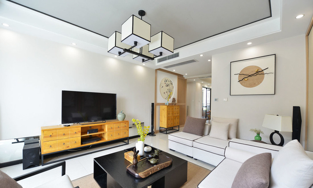 传统的中式风格给人的感觉总是刻板、深沉、没有什么创意的,但是事实真的是如此吗?不一定哦!想一想,如果中式也可以是清雅,时尚,充满艺术气息的,你还会依旧喜欢红木家具拼凑的庄重空间吗?答案是显而易见的。简单的说:“新中式风格”就是在中式风格的基础上,添加了一些现代元素。作为现代风格与中式风格的结合,新中式风格更符合当代年轻人的审美观点,所以新中式风格装修越来越受到80后甚至是90后的青睐。下面艾逸网小编就带你一起去看看这套110平的新中式案列,重点关注的是它的客厅,看看到底有什么与众不同的地方。