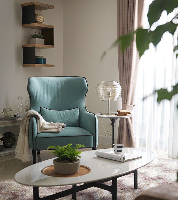 明亮简约的空间基底,以家具软装的色系,点缀出舒适柔和的空间风格,同时考虑与母亲同住,兼顾长辈的喜好与对风格的接受度。