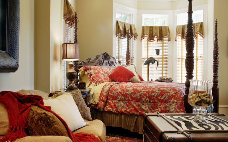 3、颜色不宜过艳丽。别墅卧室软装设计所选颜色不宜太艳,太过艳丽的颜色容易让人产生疲惫感觉,应该以柔和色为主。新婚夫妇可以选择喜庆一点的颜色,如大红色,增添喜庆气息。