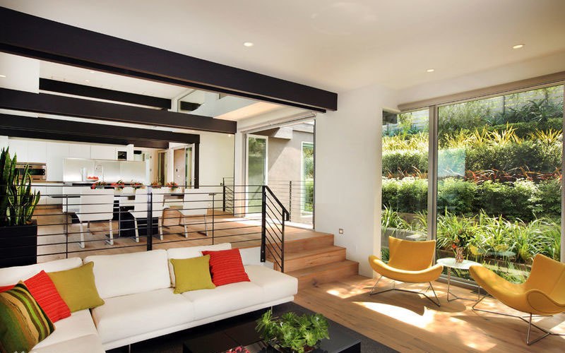 客厅与其他空间的连接凭借台阶的过渡,这样的形式仿佛整个空间都被分隔出来,客厅完全可以按照自己的喜好来装饰,甚至可以选择与其他空间完全不同的风格,以此来彰显个性。