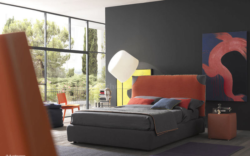 深色调卧室不妨采用明亮的撞色家具或是床品,亮色能克服暗色的压抑感,暗色可以克制亮色的张扬感,让卧室充满格调。