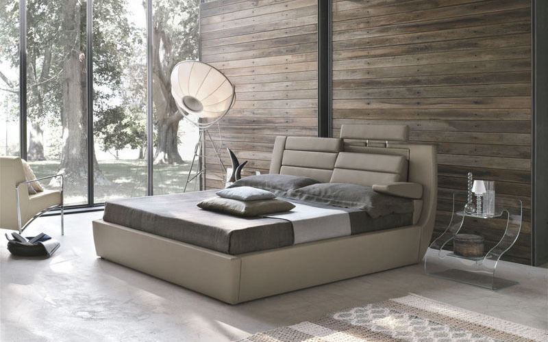 现代卧室设计这个卧室空间不大,但是有了大大的落地窗和天窗很巧妙了弥补了空间局促的缺陷。这个落地窗位于床头处,外面就是大片的绿植,私密性也相当好。