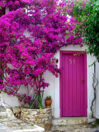 相对于简洁现代炫酷的入口设计,乡村田园风的庭院入口,显得明显低调了很多,也许就是一个简单的廊架,在旁边种上一株爬藤,或者一棵花树,低调含蓄中,默默绽放自己的精彩。