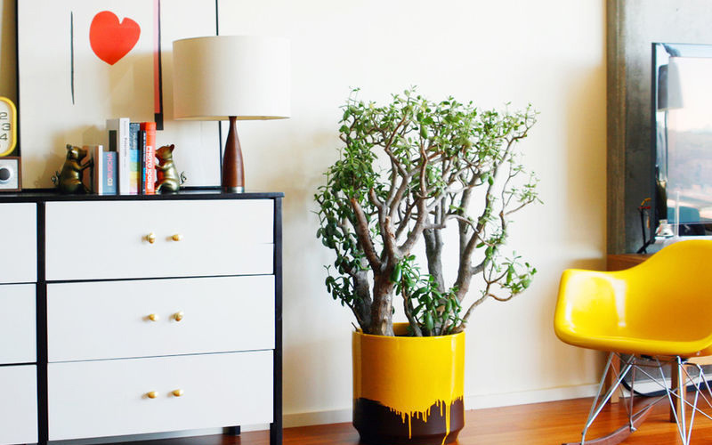 玄关最好摆放一些高茎植物,如水养富贵竹、发财树、金钱榕等,有利于保持房间的湿度平衡,而且好听的名字还能给人开门见喜的愉悦感。