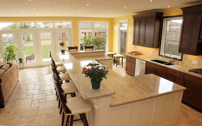 在确定岛台的大小之前,你最好先考虑一下,你要岛台来做什么?它有什么用途?你要它来吃饭,备膳,还是用来娱乐?如果你想打造一个洗碗池,那么岛台要设计得大一些,如果想用它来用餐,那么你要为餐椅设计一些底部空间,具体还是要根据你的需要来决定。