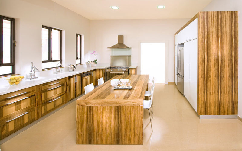 近年来的别墅装修,越来越多的厨房岛台正在向餐桌样式“进化”,较多地使用木质桌面,下部储存空间也日渐减少,于是,餐桌与橱柜相结合的混合式岛台出现了,它不仅能满足人们在厨房用餐的需要,而且也不会减少必要的储物空间,因此备受欢迎。
